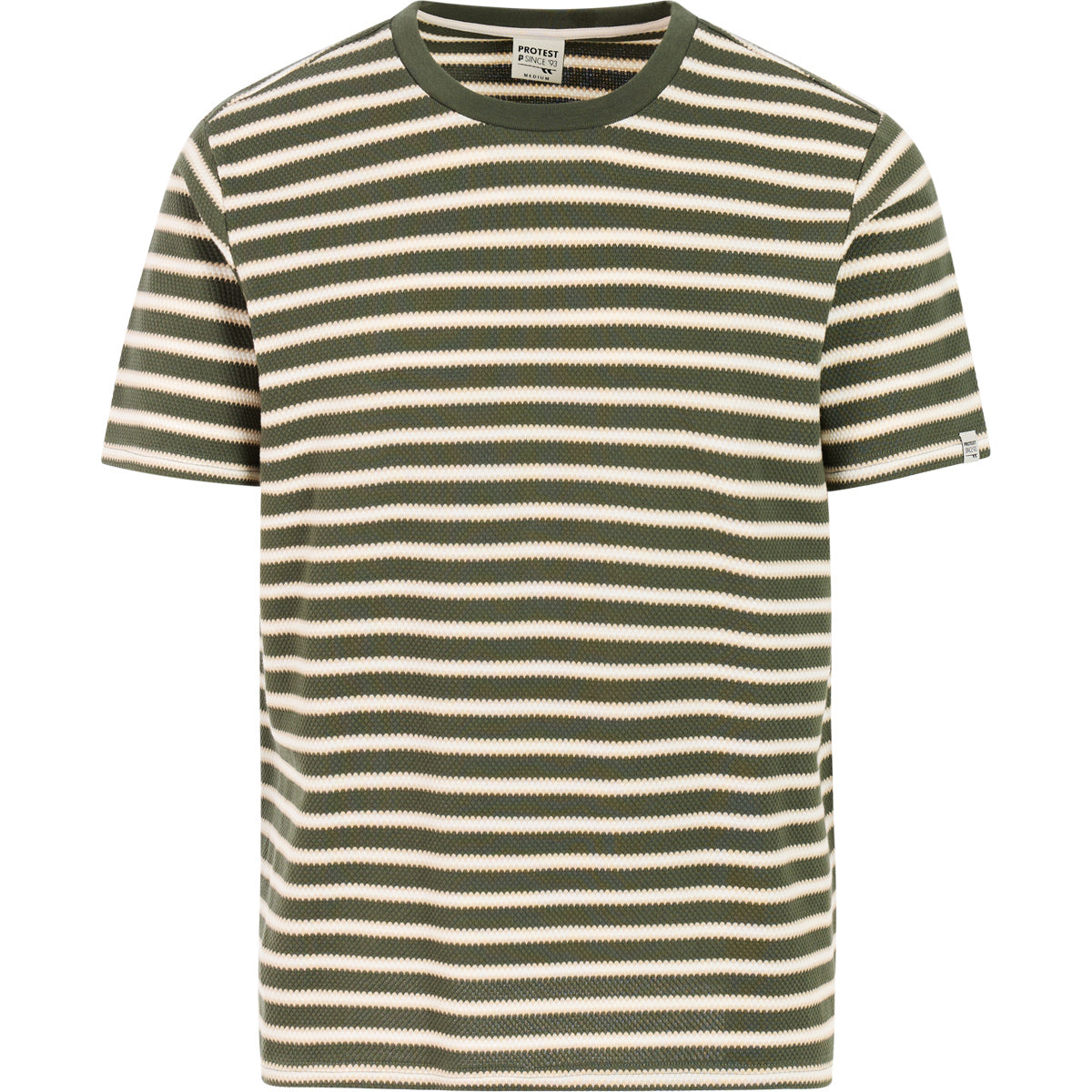 A t-shirt Protest PRTCalow é um item essencial e elegante para homens que apreciam detalhes subtis. A textura jacquard e as riscas tingidas no fio conferem personalidade à peça, enquanto o tecido de algodão respirável garante conforto mesmo nos dias mais quentes. O corte regular proporciona liberdade de movimentos, ideal para os momentos de lazer de verão. A PRTCalow é a combinação perfeita entre o desportivo e o casual, feita para o uso diário.