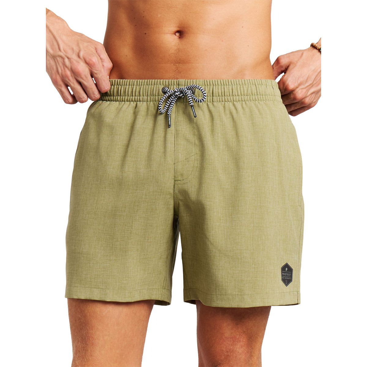 Presentamos los pantalones cortos de baño Davey de Protest. Con una longitud de 40 cm, estos pantalones cortos llegan hasta la mitad de la rodilla, por lo que son de estilo corto. Los pantalones cortos de baño Davey tienen una cintura elástica con cierre de cordón. El tejido ligero melange se seca rápidamente, lo que garantiza tu comodidad. El bolsillo trasero tiene un cierre de cremallera y un cordón para llaves en el interior para mantener tus objetos personales seguros y a salvo. Cuenta con un forro interior para mayor protección y bolsillos en las costuras laterales. Como parte de nuestra iniciativa de tallas, estos fantásticos pantalones cortos están disponibles desde la talla XS hasta la XXXL. Los pantalones cortos de baño imprescindibles para el verano, los Davey de Protest.
