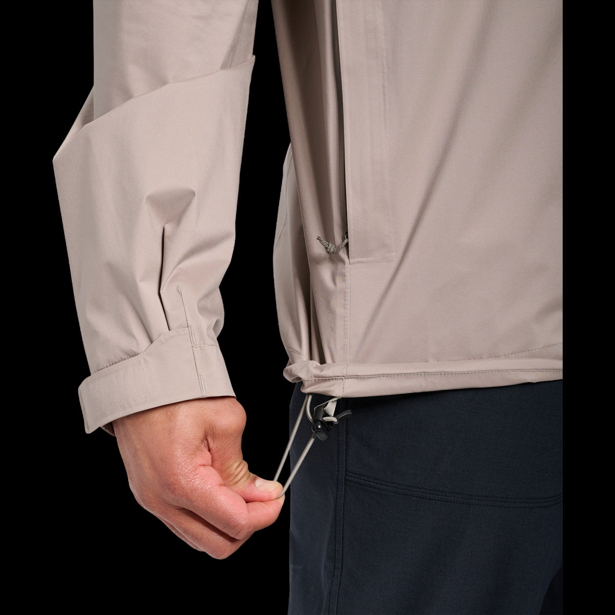 + El tejido elástico aumenta el confort y la movilidadCremalleras DWR en las axilas para mayor ventilaciónFuelle en las axilas para mayor movilidadCapucha ajustable compatible con casco de escaladaCremallera frontal central YKK AquaguardPuede guardarse en el bolsillo derecho con mosquetónPuños y dobladillo ajustables