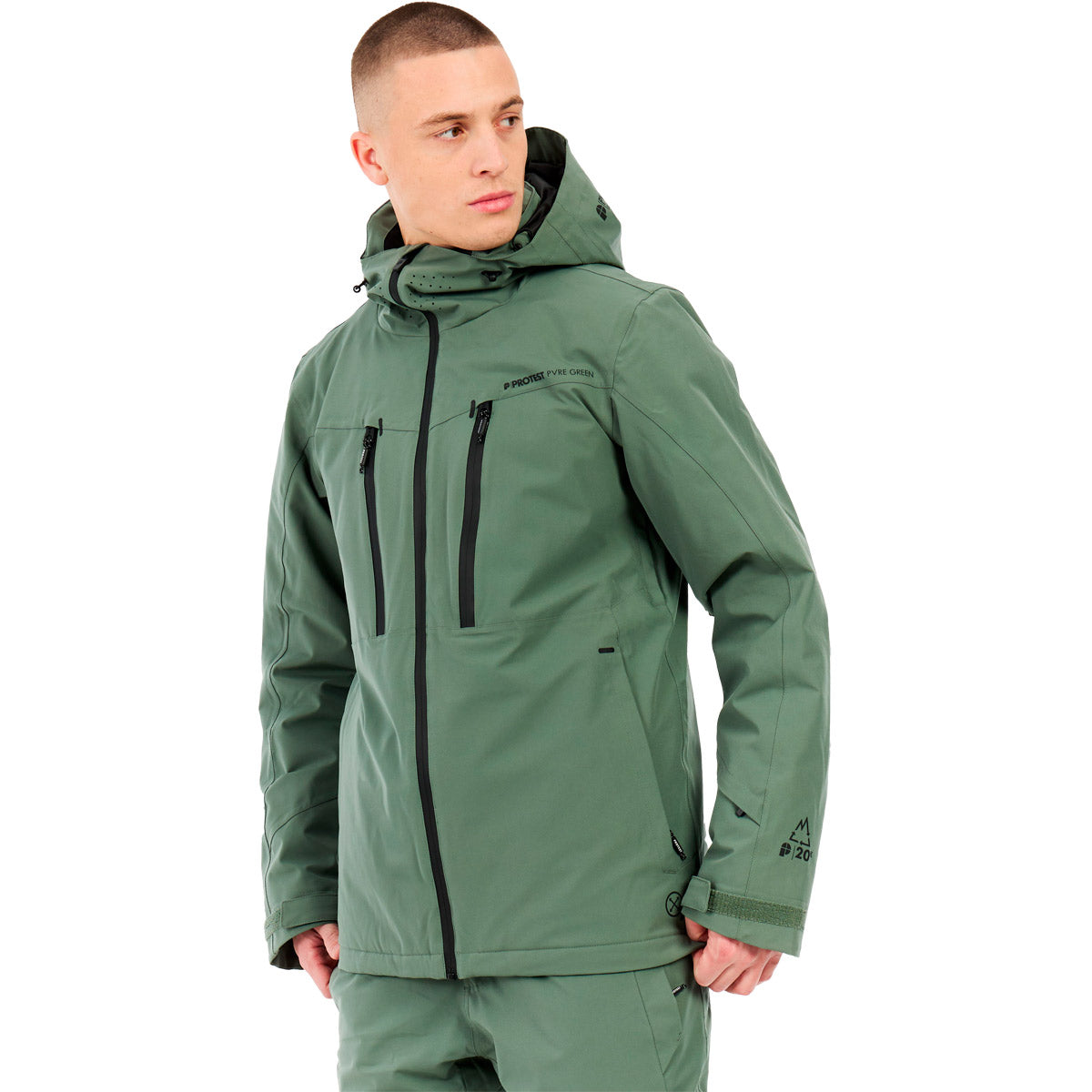 + Material reciclado, PVRE GREEN, Material reciclado, Sin PFC, Elástico, Acabado repelente al agua duradero sin PFC, 20K, 20g, Corte entallado, Manga larga, Longitud regular, Cuello alto, Puño interior con orificio para el pulgar, Costuras totalmente selladas, Capucha fija, Compatible con casco, Bolsillo para forfait, Bolsillo para gafas, Polaina de cintura, Cremallera completa, Cremallera regular|Cremallera impermeable, Cremallera de ventilación en la axila, Cremallera de bolsillo, Tapeta interna
