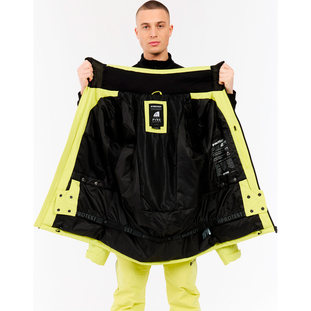 La chaqueta de esquí y snowboard PRTTIMOTHY de Protest combina estilo y practicidad con un diseño respetuoso con el medio ambiente. Parte de nuestra serie PVRE Green, la PRTTIMOTHY está fabricada con materiales reciclados y no contiene PFC nocivos. El PRTTIMOTHY tiene un montón de características de diseño útiles, como la capucha fija compatible con casco con cuello alto, bolsillo para gafas, polaina en la cintura y bolsillo para el forfait. La transpirabilidad de 20 g y el acabado hidrófugo 20K dejan salir el exceso de humedad a la vez que te protegen de la humedad del ambiente. ¿Cintas completas, cremalleras de ventilación bajo las axilas y cremalleras frontales repelentes al agua? ¡Comprobado! Los puños interiores de Lycra con orificio para el pulgar de la PRTTIMOTHY son muy prácticos cuando estás en las pistas. Las cremalleras de color claro y el logotipo Protest completan el look. La PRTTIMOTHY está disponible en corte y longitud ajustados.