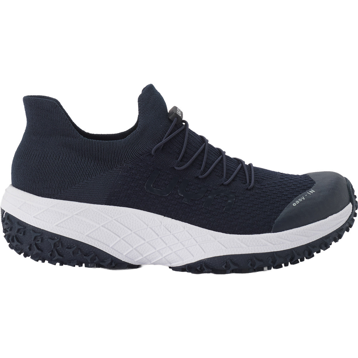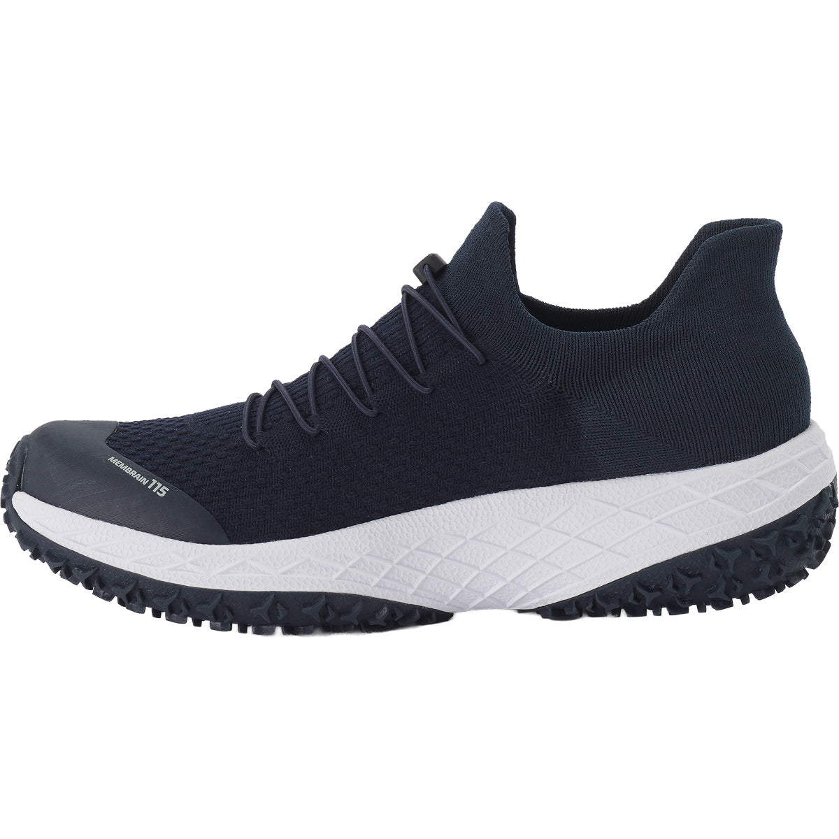 Calçado técnico em azul meia-noite, concebido para oferecer o máximo conforto e apoio durante as atividades em trilhos mistos. A estrutura avançada garante estabilidade, responsividade e adaptabilidade, ideal para treinos intensos e longas caminhadas.