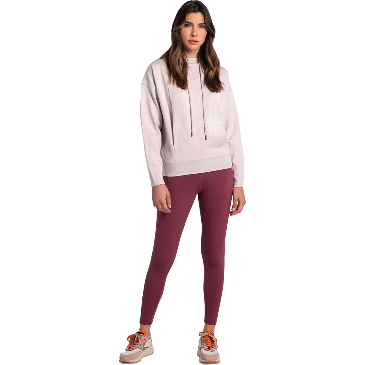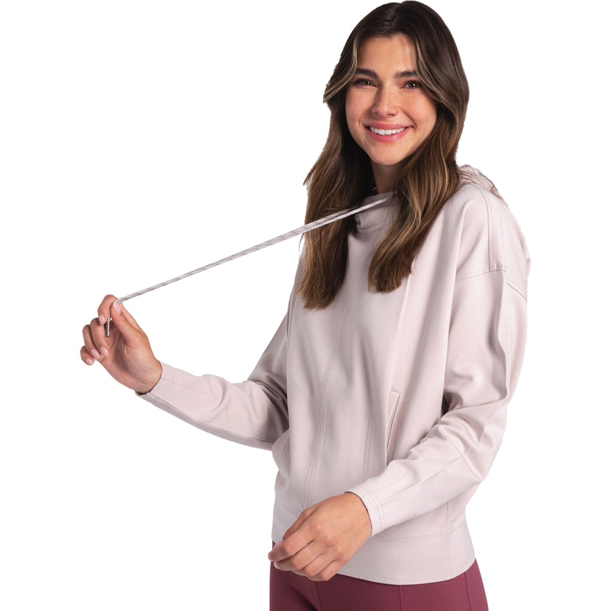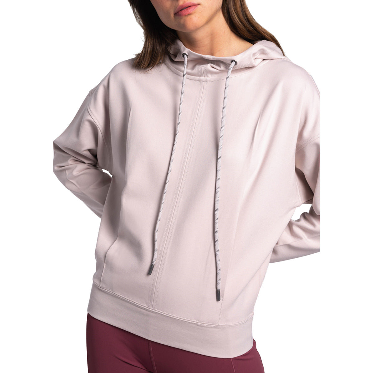 Um moletom com capuz quente, mas fresco ao toque. Com cordão no pescoço e bolsos canguru ocultos. Combine com jogging para estar em casa ou com jeans para sair.