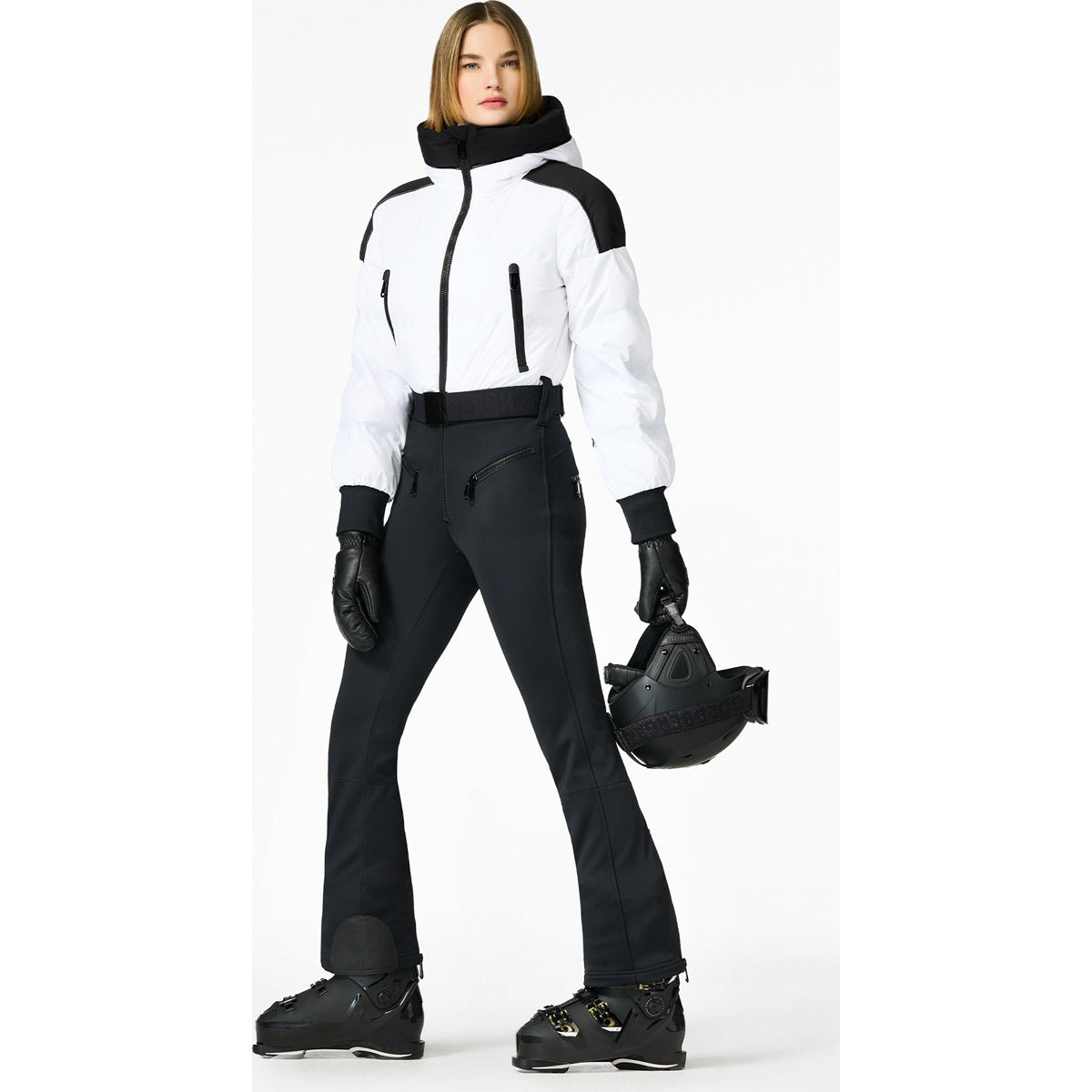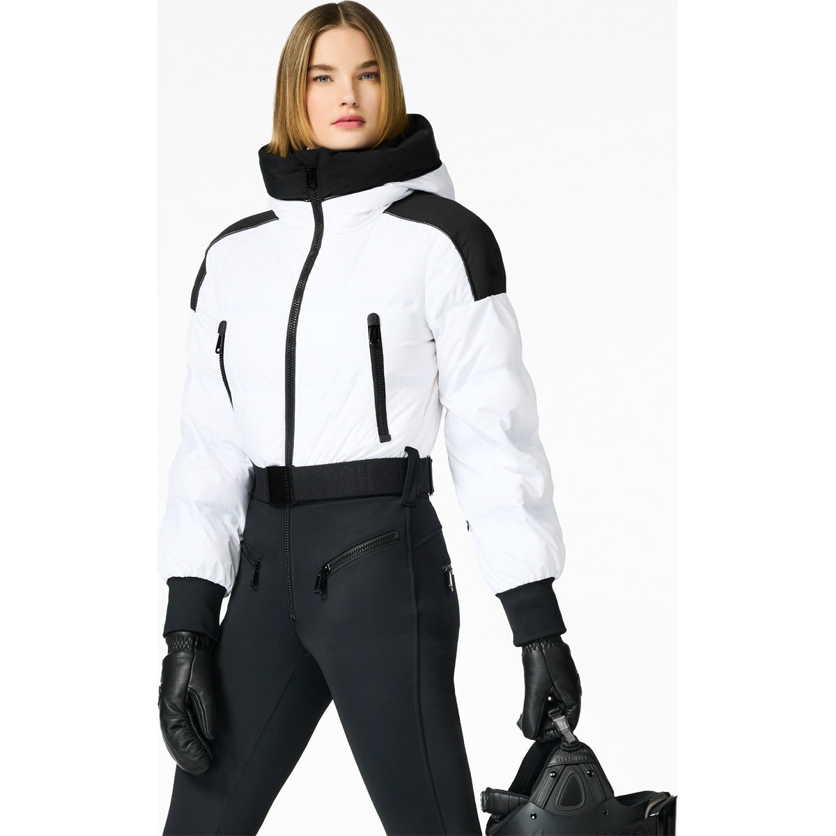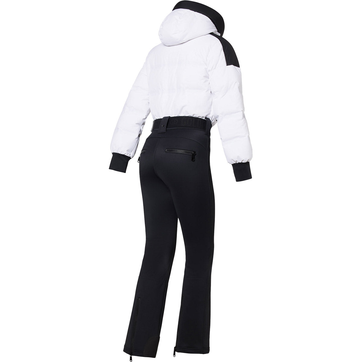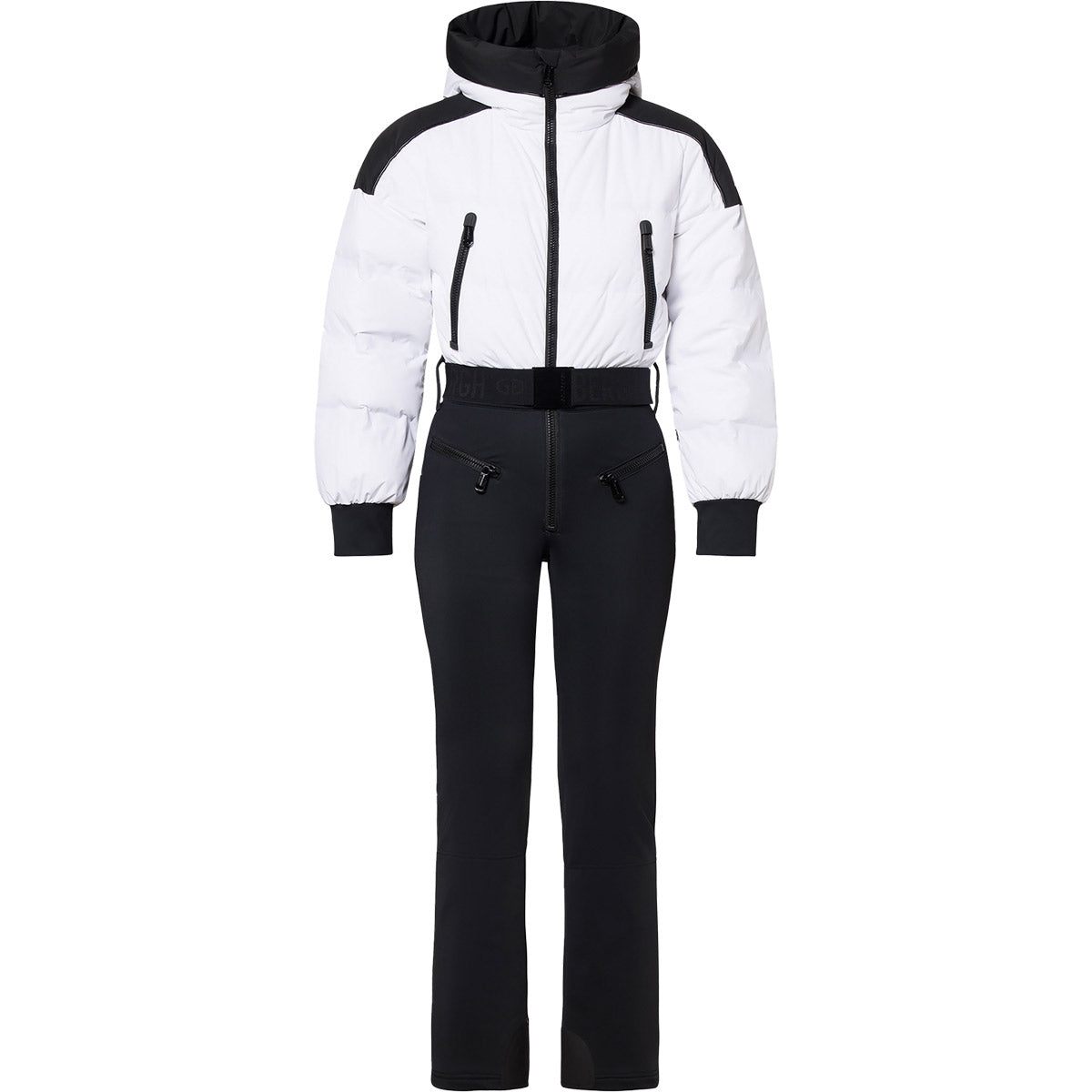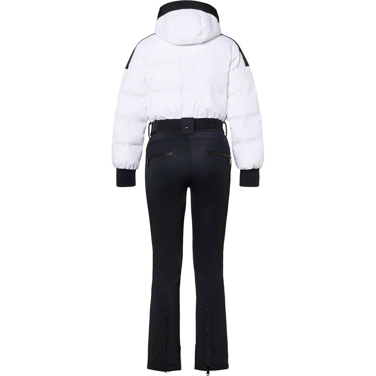 Mono de esquí con parte superior de plumón, capucha y cinturón