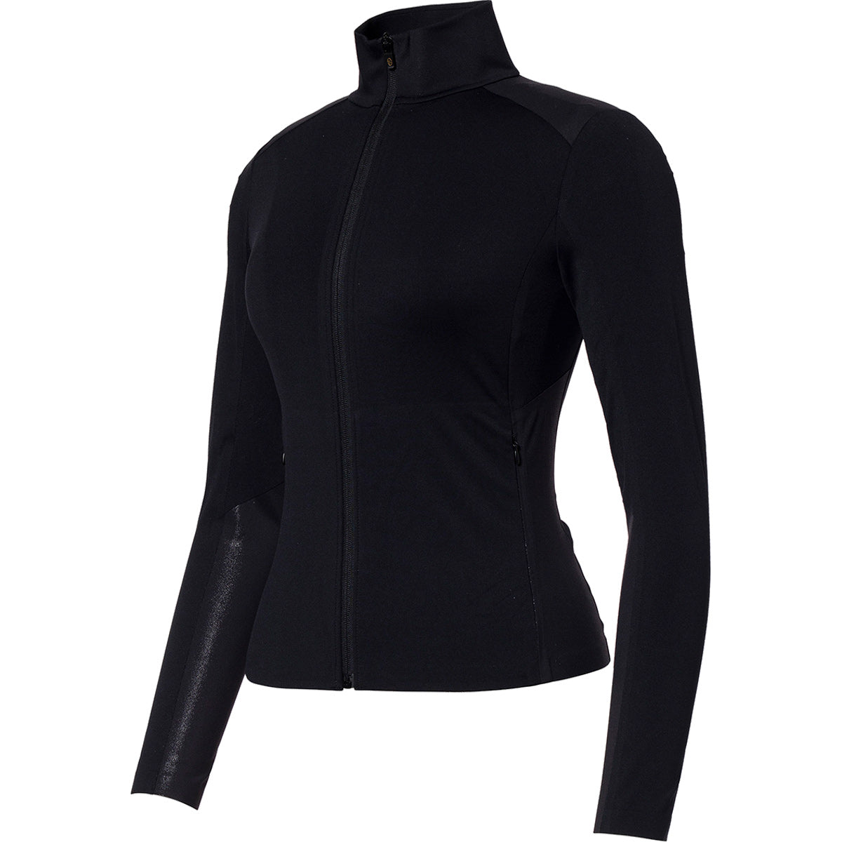 Chaqueta deportiva con cremallera completa, paneles brillantes y ajuste ceñido.