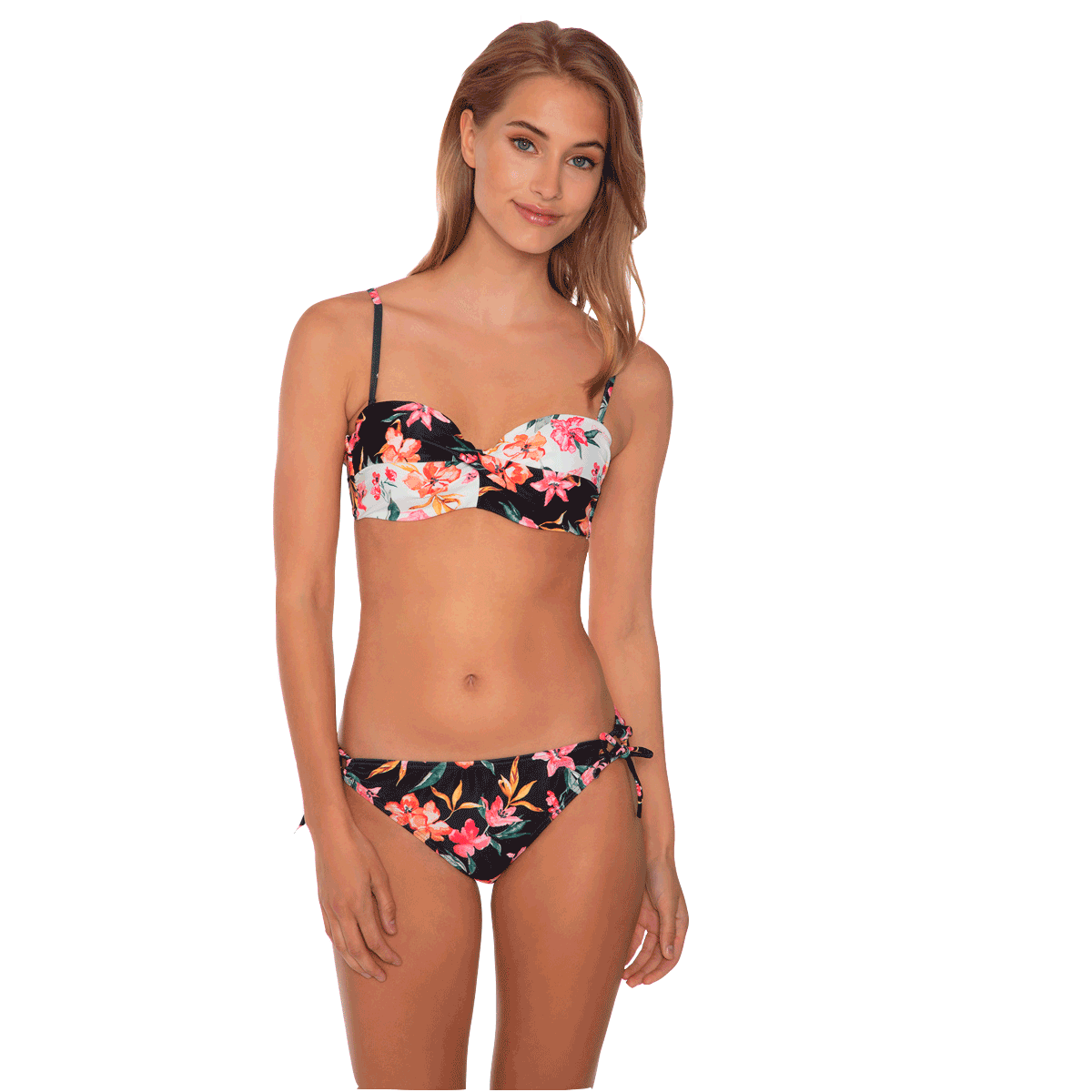 Apresentamos a fantástica Pousada 21 B by Protest. Este biquíni cai-cai é muito lisonjeiro e apresenta uma estampa floral maravilhosa. O desenho do top é cruzado no peito. As alças removíveis permitem transformá-lo em um biquíni cai-cai para um bronzeado perfeito. As alças são ajustáveis e podem ser usadas de diversas maneiras. Com aros e copas de espuma removíveis para suporte superior. A calcinha tem corte reto e possui amarração nas laterais. O tecido não inclui substâncias PFC que poluem o meio ambiente. O biquíni perfeito para o verão. Altura do modelo: 1,75 m. Tamanho do modelo: M.