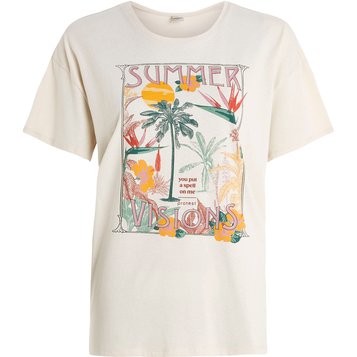 Não há dúvida de que o PRTESSE da Protest é feito para o verão. A grande estampa artística na frente transforma esta linda camiseta de corte regular em um verdadeiro atrativo. A outra grande vantagem do PRTESSE é que faz parte da nossa série PVRE Green, a nossa iniciativa de sustentabilidade para encontrar novas formas de ser mais verde. Para esta t-shirt de verão utilizámos um tecido sustentável feito de algodão BCI. BCI significa Better Cotton Initiative, uma organização sem fins lucrativos que promove melhores padrões no cultivo do algodão. O PRTESSE by Protest é um complemento essencial ao seu guarda-roupa.