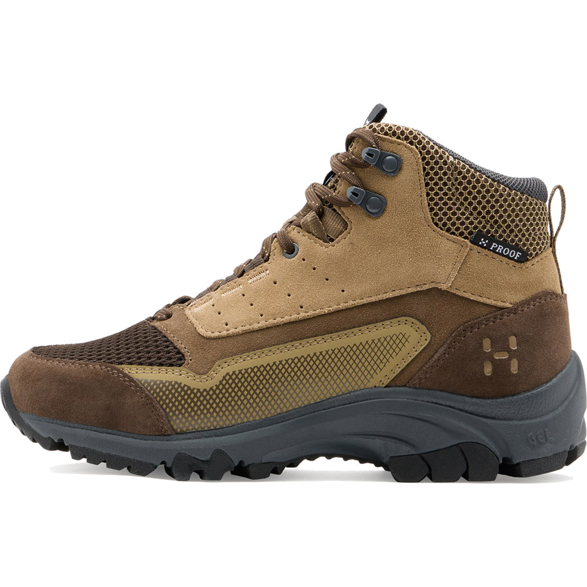Os HAGLÖFS ROSSON PROOF são sapatos impermeáveis que oferecem suporte para as aventuras de trekking. Projetados para uma longa vida útil em terrenos e condições variáveis, estão equipados com membranas PROOF™ sem fluorocarbonetos, entressolas moldadas em EVA para amortecimento confortável, parte superior em pele durável certificada pelo Leather Working Group com malha em áreas chave, tudo tratado para repelir água e sujidade, e solas com padrão para excelente tração e estabilidade.