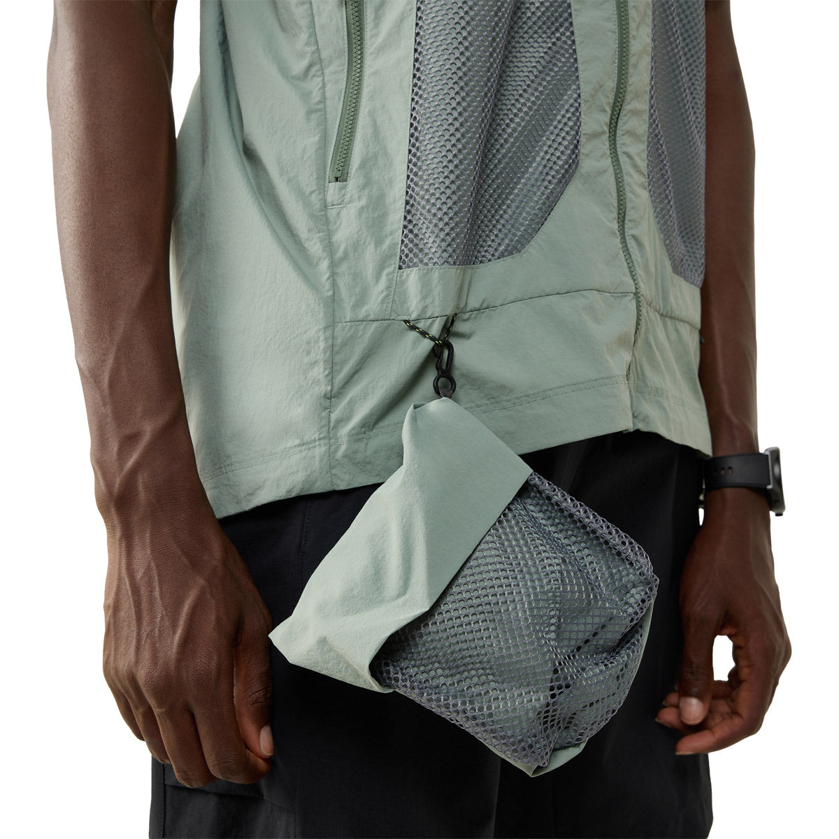 + Bolsillo plegable para guardar las mangas desmontables cuando no se utilizan.