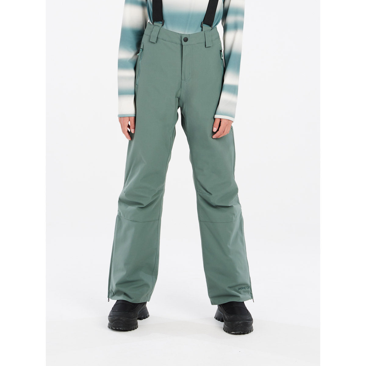 + Sin PFC, Acabado repelente al agua, 10K, 10g, Corte normal, Longitud normal, Botones a presión, Puños en los tobillos, Costuras selladas críticamente, Cremalleras en la parte inferior de la pierna, Cremallera de bolsillo, Sistema elástico en el interior de la cintura, Tirantes desmontables, Cintura fija, Cintura normal