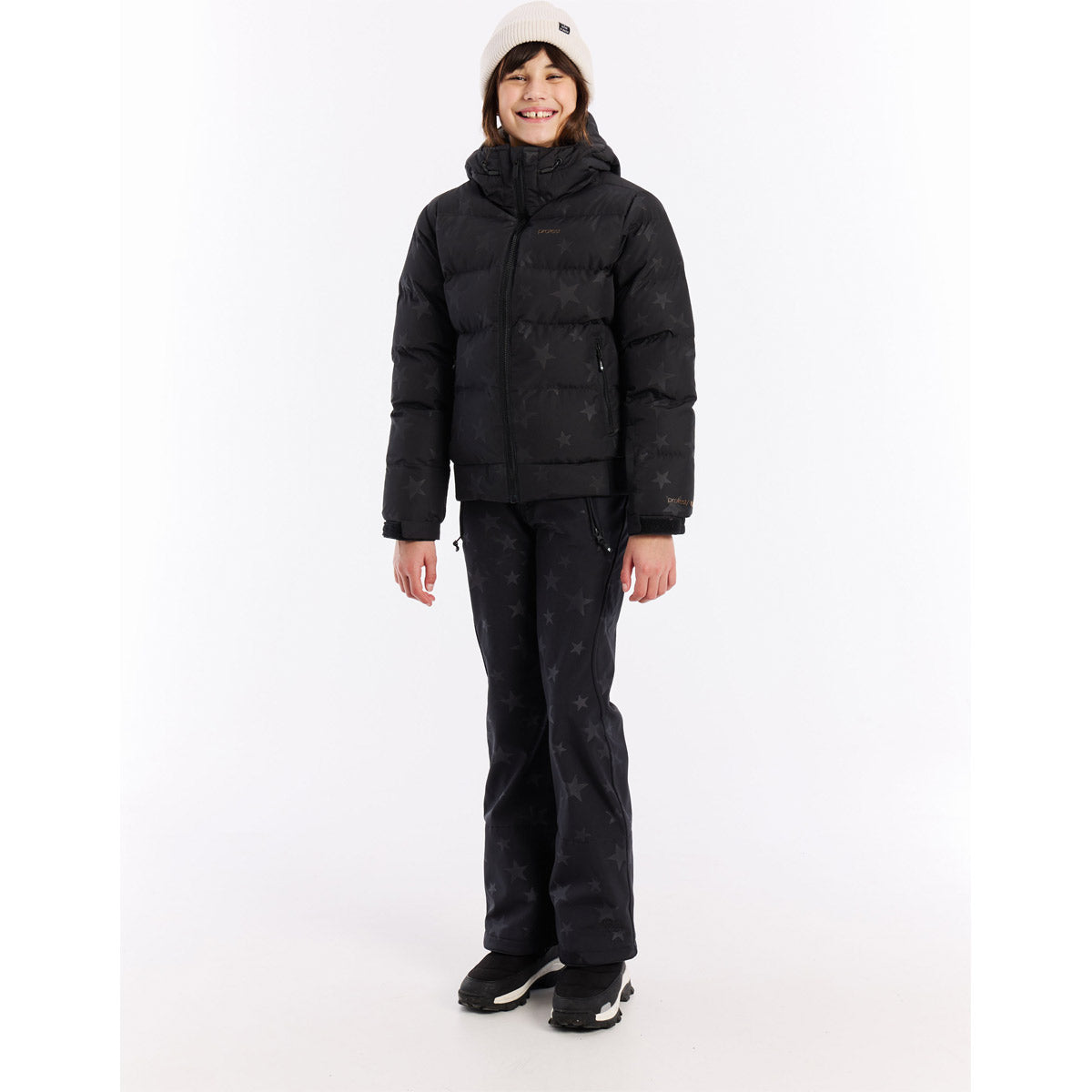La chaqueta de nieve PRTVerity JR, diseñada para afrontar el frío con comodidad, cumple todos los requisitos. Fabricada con materiales reciclados PET y parte de nuestra colección PVRE GREEN, es una elección respetuosa con el planeta para los jóvenes aventureros. La combinación de tecnología 10K/10g, el cuello alto y la capucha fija ofrecen una protección invernal completa, mientras que los detalles bien pensados, como los puños con orificio para el pulgar, la polaina de la cintura y los bolsillos con cremallera, ayudan en cada giro, vuelta y pelea de bolas de nieve.
