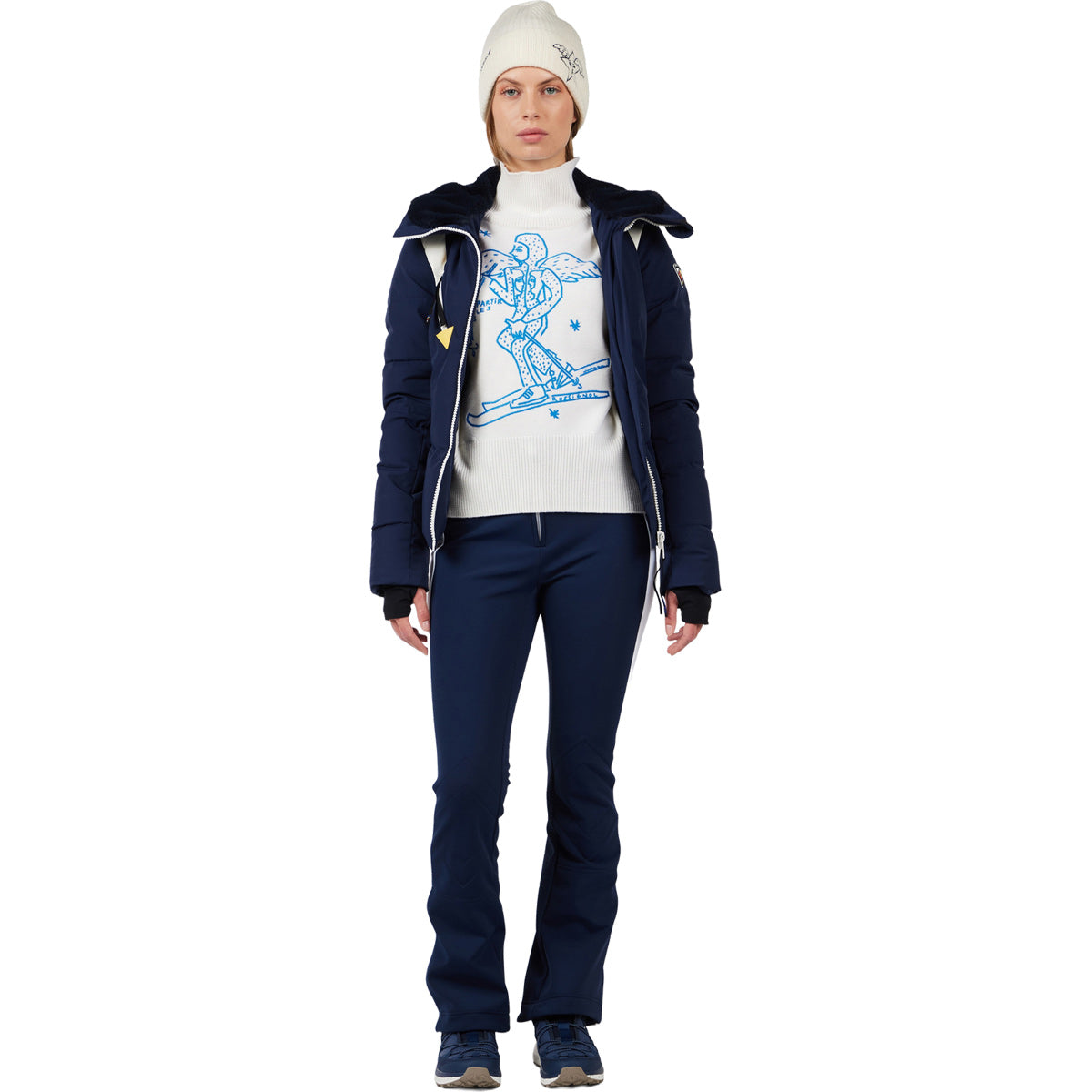 La leyenda de la moda francesa Jean-Charles de Castelbajac lleva décadas dibujando ángeles en las paredes de las ciudades. Ahora los diseños icónicos echan a volar en la montaña con la sudadera Rossignol JCC Lina para mujer. Confeccionado en lana merino ultrasuave, con detalles de canalé y cuello alto, te mantendrá muy abrigada y cómoda. Regular Fit Corte clásico con un poco más de espacio para mayor comodidad y libertad de movimiento, y para añadir cómodamente capas por debajo Confort natural La lana merino es naturalmente transpirable, duradera, resistente a los olores y termorreguladora