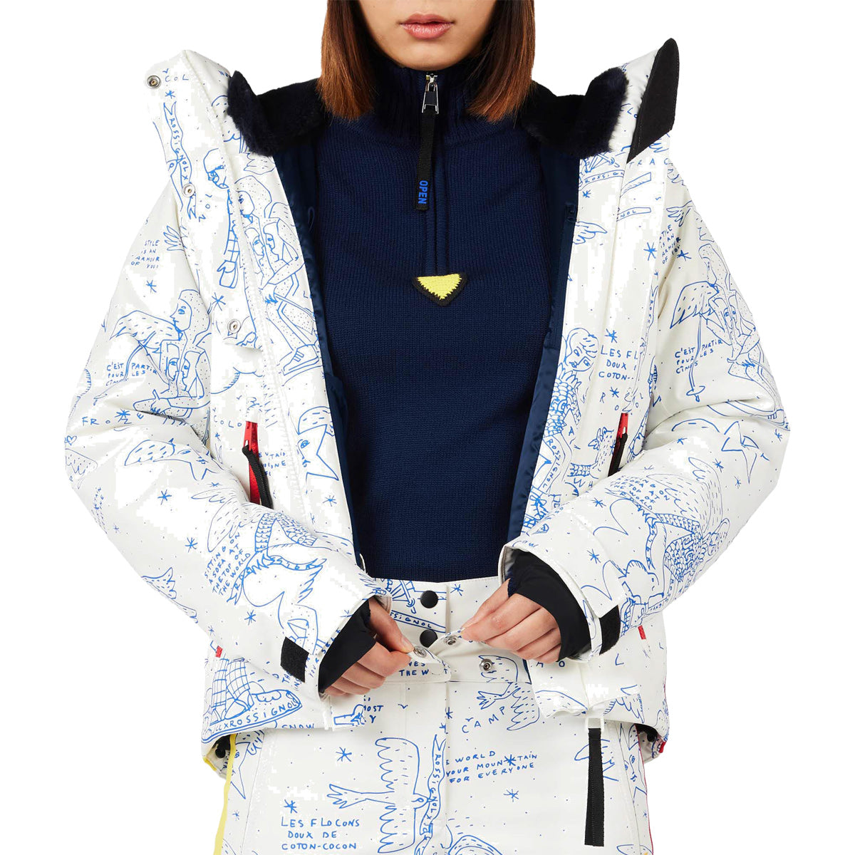 Desde las líneas que trazas hasta la ropa que llevas: el esquí es una expresión de uno mismo. Con la chaqueta de esquí Rossignol JCC Sublim para mujer, tu estilo echa a volar con los icónicos ángeles de la leyenda de la moda francesa Jean-Charles de Castelbajac. Una prenda sobresaliente que ilumina todas las pistas de esquí y además te protege de la nieve y el frío gracias a su capa impermeable contra tormentas, con costuras totalmente selladas y de bajo volumen. La elasticidad incorporada te permite moverte con libertad y, además, cuenta con funciones para los días de esquí, como el bolsillo para el forfait y la capucha compatible con casco. Regular Fit Corte clásico con un poco más de espacio para mayor comodidad y libertad de movimiento, y para añadir cómodamente capas por debajo Membrana impermeable/transpirable 20 000/20 000 Mantente seco y cómodo aun con fuerte lluvia o nieve Costuras totalmente selladas Todas las costuras están selladas para ofrecer la protección más completa contra el viento y la lluvia Repelencia al agua sin PFC Incluye un acabado hidrófugo duradero Durable Water-Repellent (DWR) que repele la lluvia y la nieve ligeras sin utilizar productos químicos tóxicos a base de fluorocarbonos Calidez ligera, transpirable y reciclada El aislamiento transpirable Primaloft® Black te mantiene caliente incluso en condiciones húmedas y se compone al 100 % de material reciclado postconsumo fabricado a partir de botellas de plástico. Con certificación GRS (Global Recycled Standard) Aislamiento 133 g/100 g Aislamiento más cálido en el cuerpo y más ligero en las mangas para mantenerte cómodo en temperaturas frías y muy frías. Elasticidad en cuatro direcciones Tejido de alto rendimiento con el máximo nivel de elasticidad para adaptarse a tu cuerpo y ofrecerte un plus de comodidad y movilidad y una amplitud de movimiento natural Materiales reciclados El tejido exterior se elabora con materiales 100 % reciclados para ayudar a reducir el uso de recursos de materias primas
