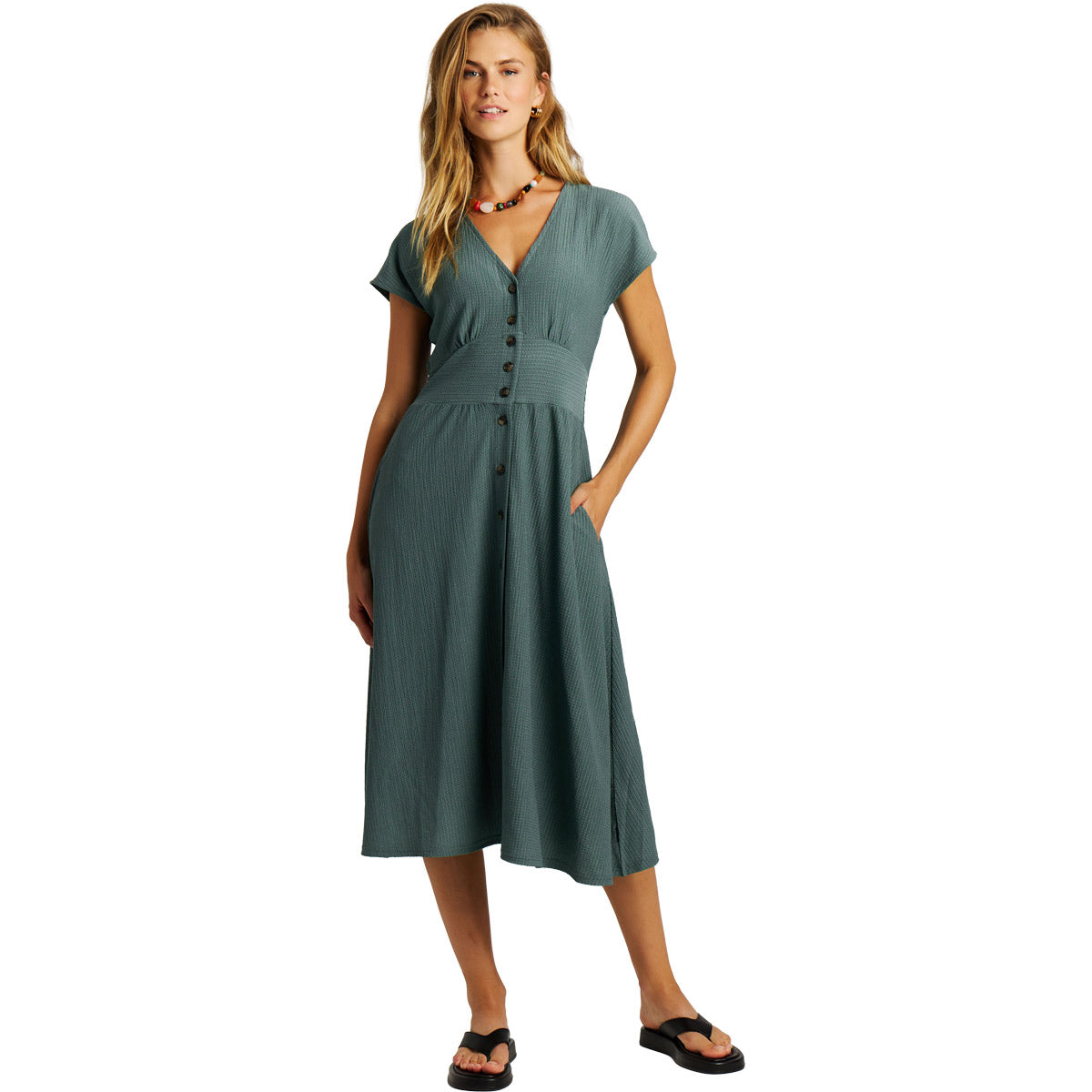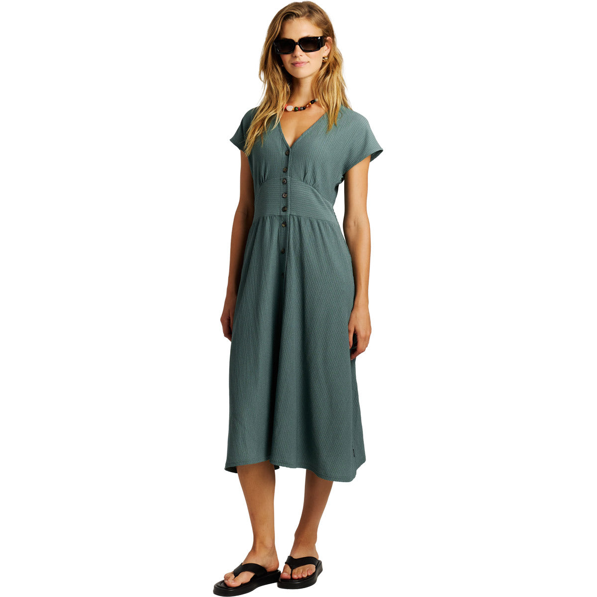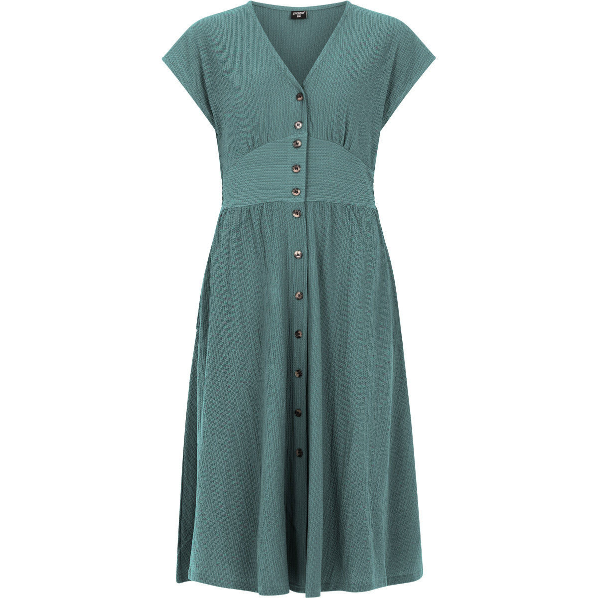 El vestido midi PRTNieve combina elegancia y comodidad para el día a día. Con un largo hasta la pantorrilla, mangas 1/8 y botones en la parte delantera, ofrece un ajuste favorecedor. La cintura elástica le da forma, mientras que la mezcla de poliéster y elastano proporciona un tacto suave y flexible.