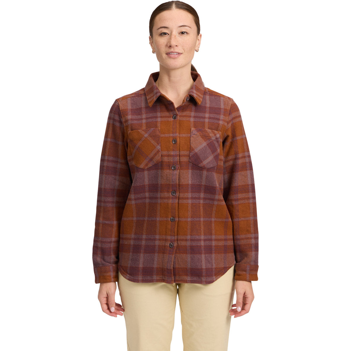 A flanela Heavyweight Project é confortável, robusta e melhora com o tempo. Esta flanela com botões de algodão orgânico escovado foi projetada para ser usada com outras camadas e é ideal para dias frios nas montanhas.