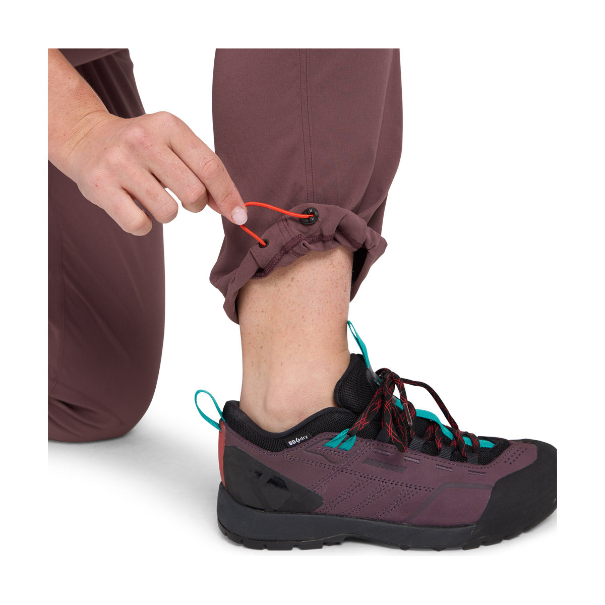 Concebidas para a vida em movimento, as Calças Pursuit são fabricadas em nylon elástico bidirecional com acabamento DWR sem PFC. Este tecido proporciona durabilidade e liberdade de movimentos, seja para caminhadas durante todo o dia, longas viagens de carro ou escaladas. As características orientadas para a atividade física incluem virilhas reforçadas e joelhos articulados para espaço para degraus altos e saltos em pedras, bem como um cinto ajustável na bainha inferior para ciclismo ou escalada. Uma perna direita simples com dois bolsos frontais, dois bolsos traseiros e um bolso com fecho na coxa para guardar um telemóvel ou um snack completam as características destas calças versáteis.