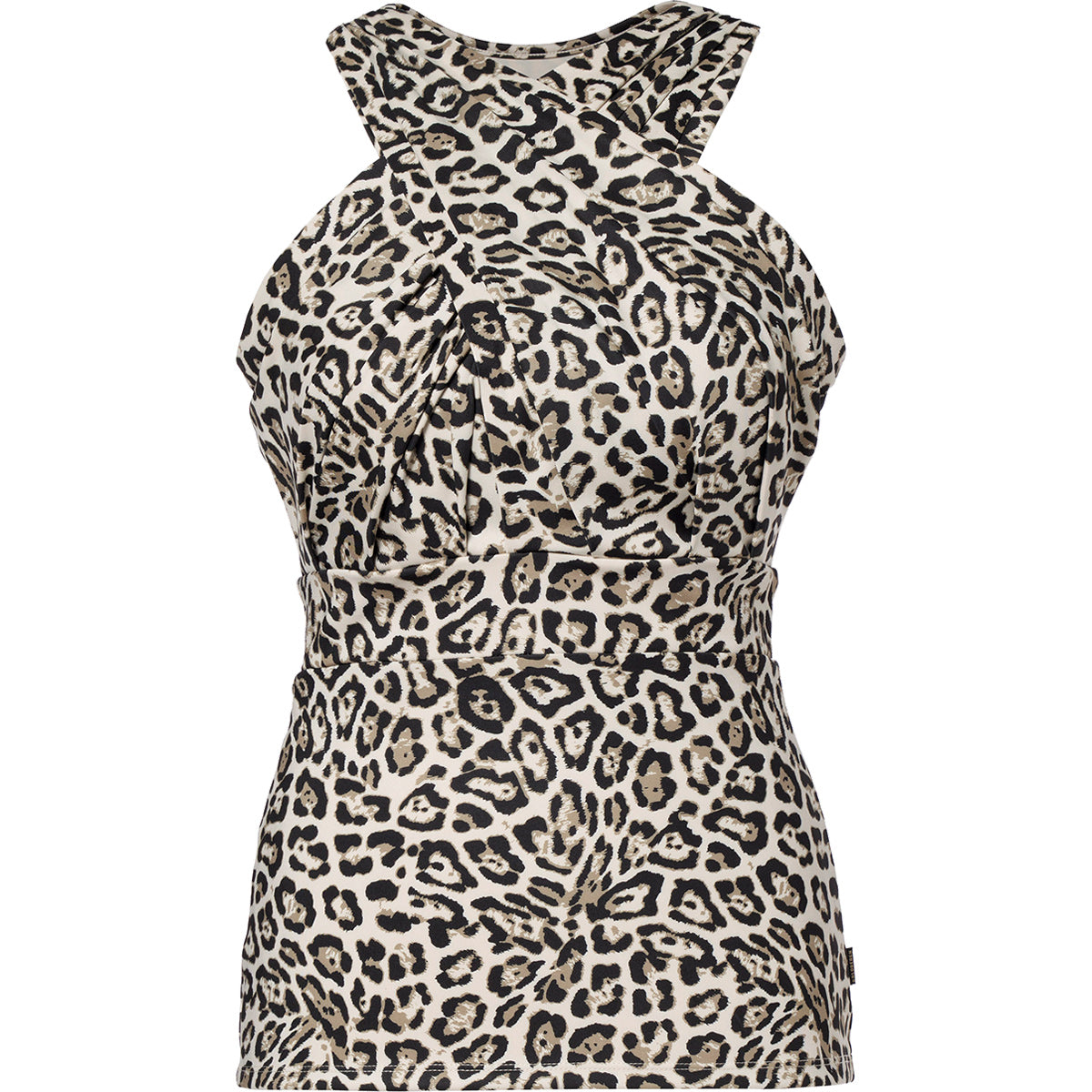 Top desportivo comprido com estampa de onça-pintada e ligeiro suporte.